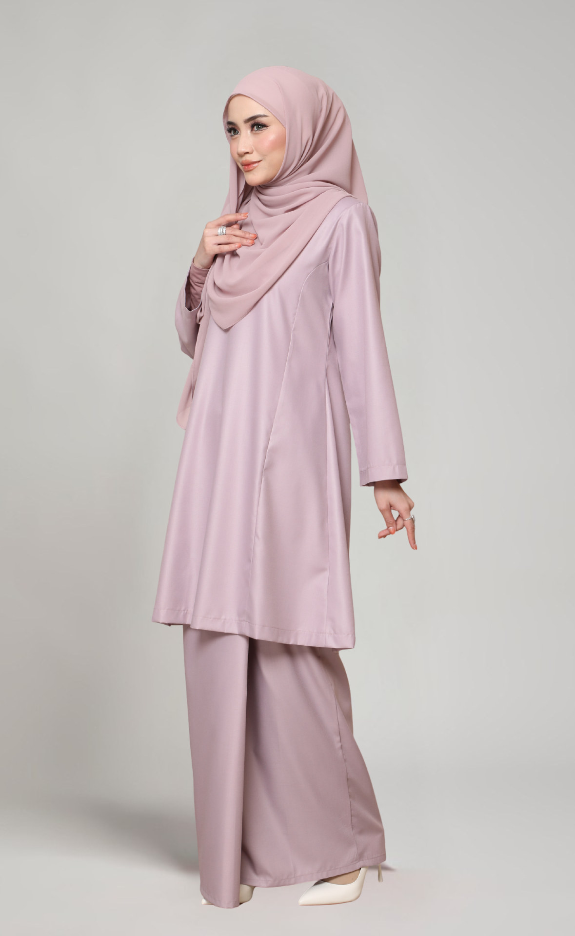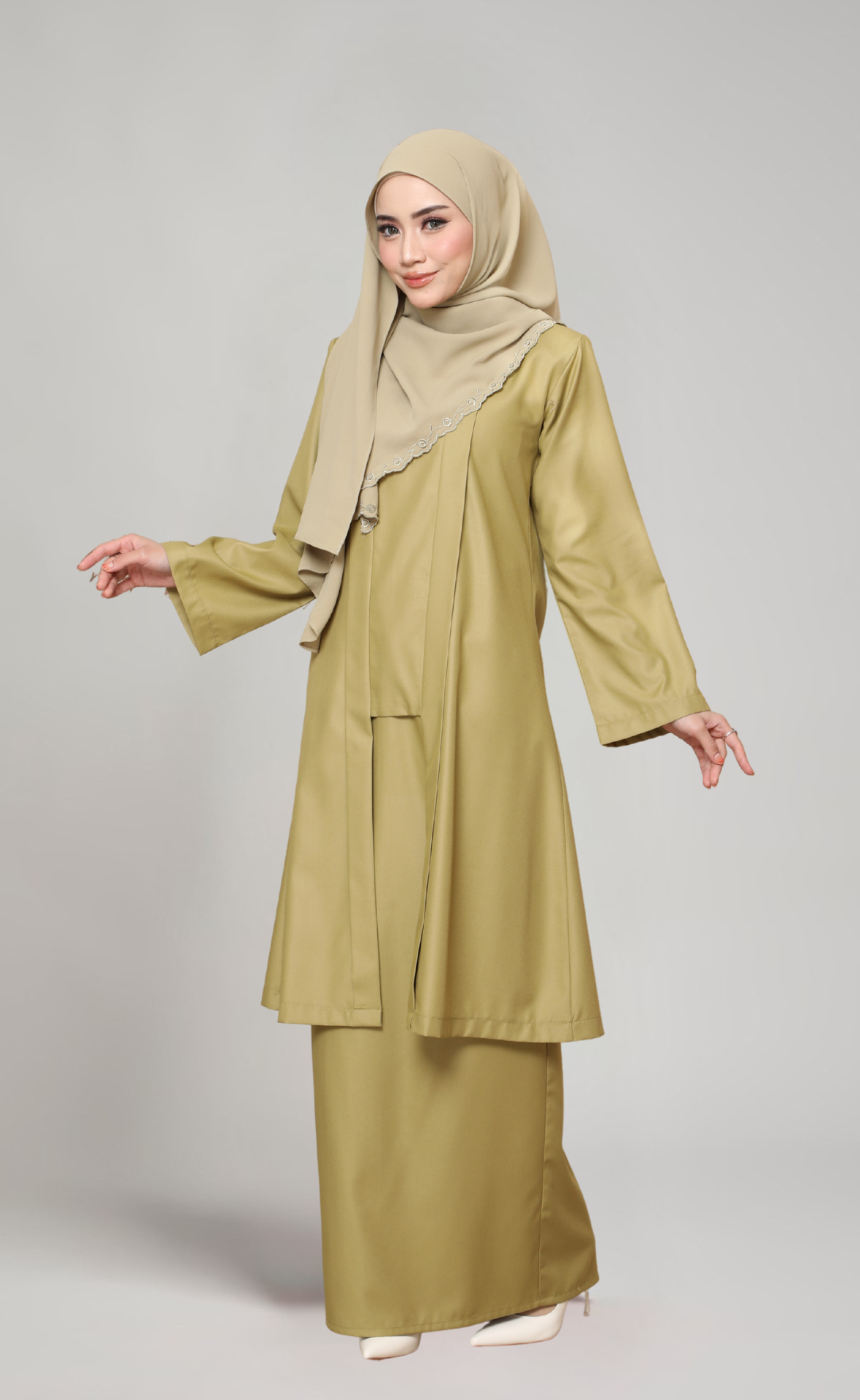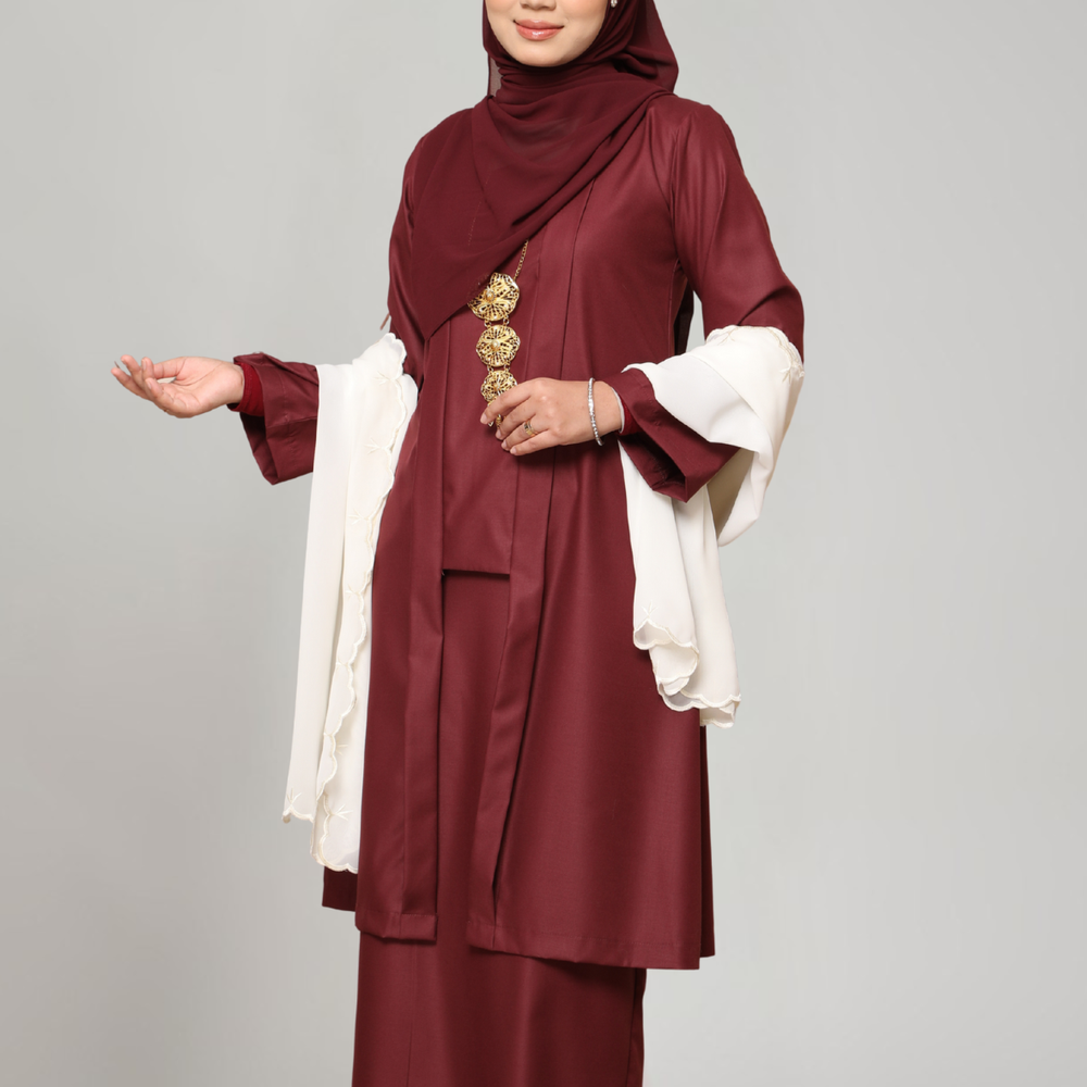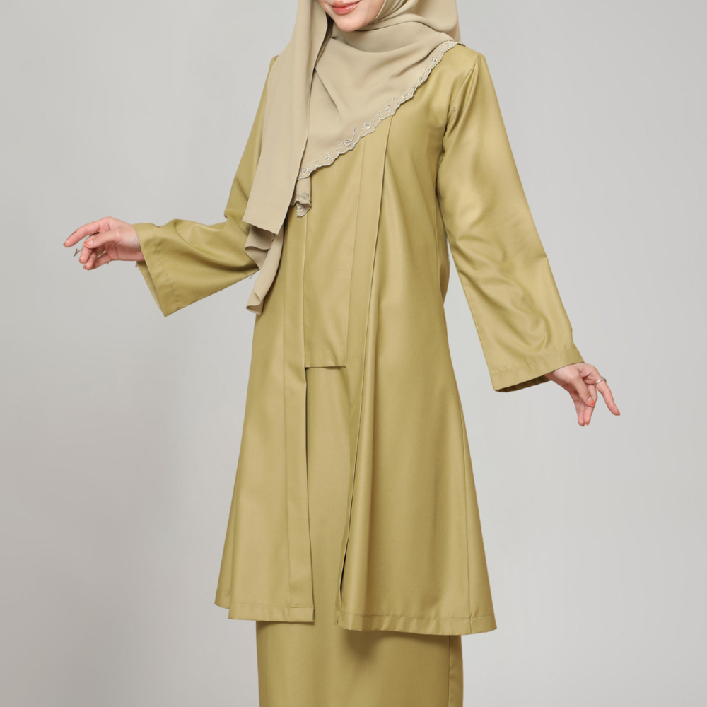 Koleksi Rindu Desa menampilkan rekaan eksklusif Inhanna yang menonjolkan keanggunan feminin melalui potongan longgar, perincian halus, dan warna-warna lembut yang mengimbau ketenangan desa.