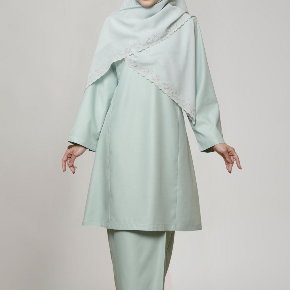 Dengan siluet pesak gantung yang longgar tetapi tetap terletak, serta kemasan leher Teluk Belanga yang ringkas dan elegan, Azalea 2.0 menyerlahkan keindahan busana tradisional Melayu dalam nuansa yang segar. Dipadankan dengan kain pensel bertindih di hadapan (overlap pencil skirt), rekaan ini memberikan keseimbangan antara tradisional dan moden membolehkan anda melangkah dengan yakin di mana sahaja.