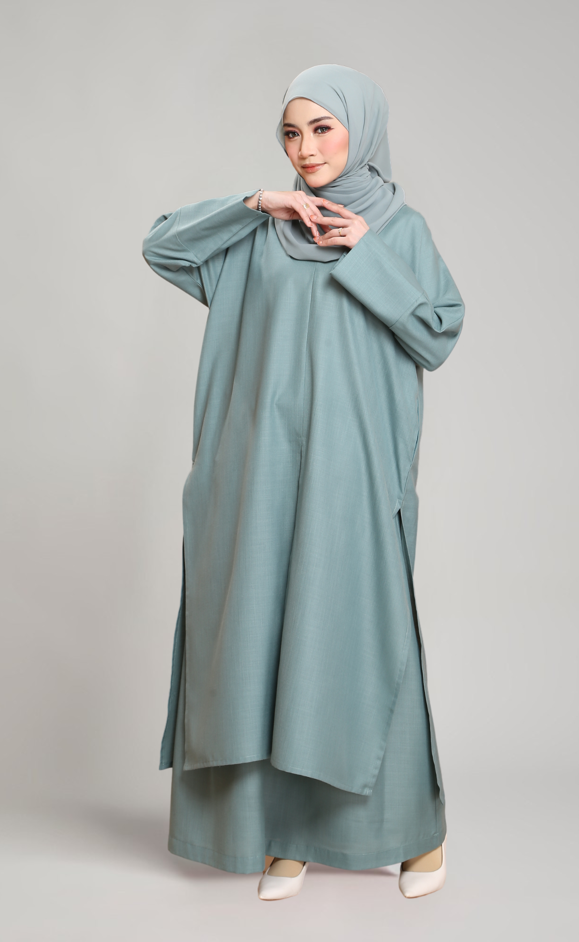 Material Cotton Linen yang sejuk, serap peluh & tidak mudah renyuk, menjadikan Janna pilihan tepat untuk cuaca panas Malaysia dan rutin kerja yang sibuk. Untuk wanita yang mencari gaya patuh syariah tanpa kompromi gaya dan keselesaan, Janna ialah jawapannya.