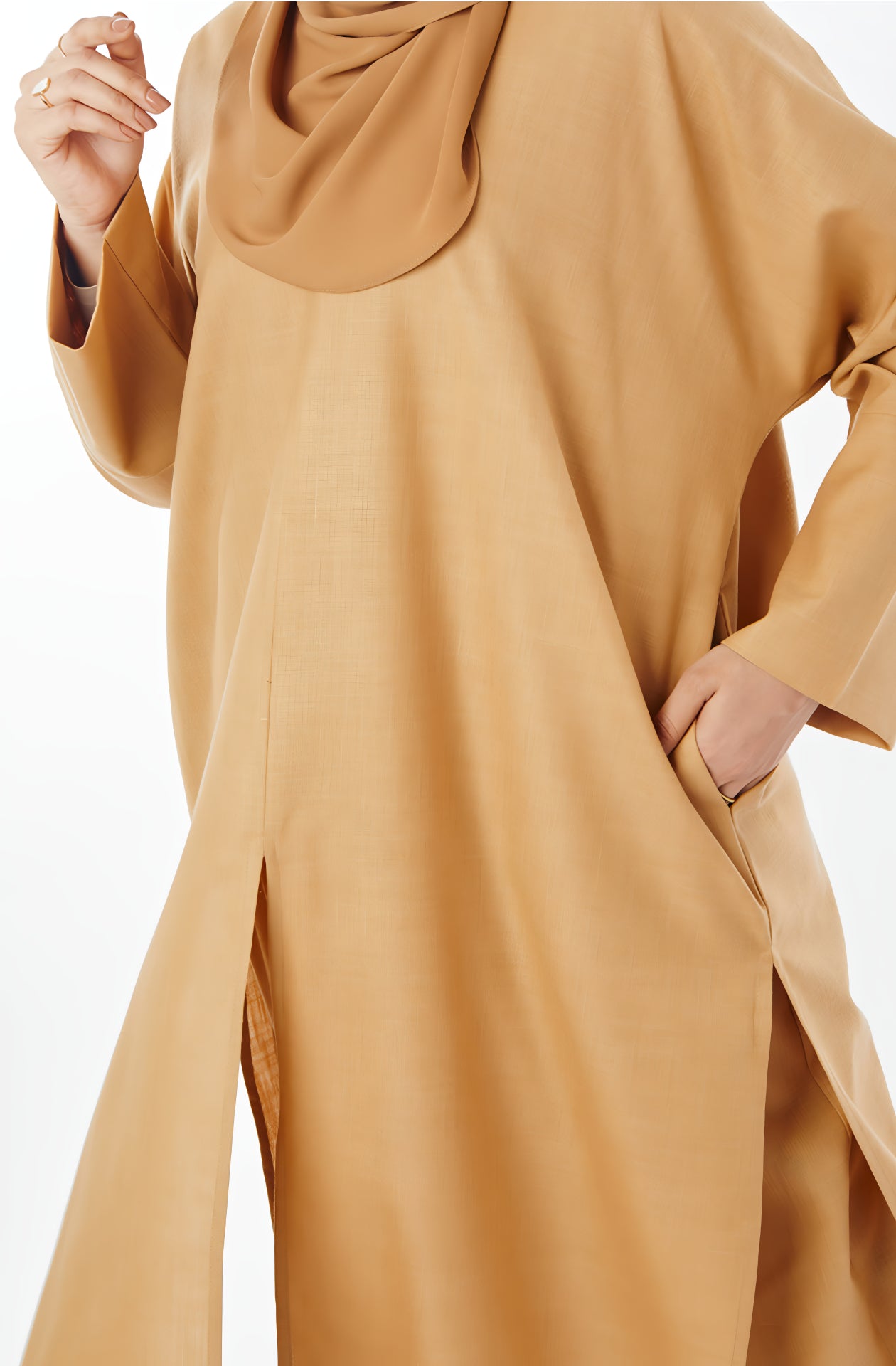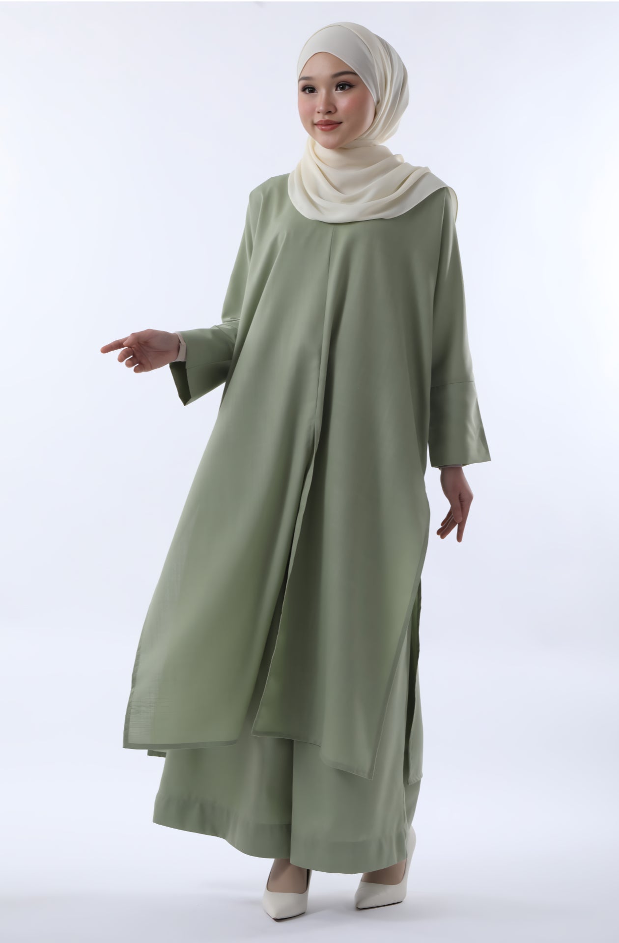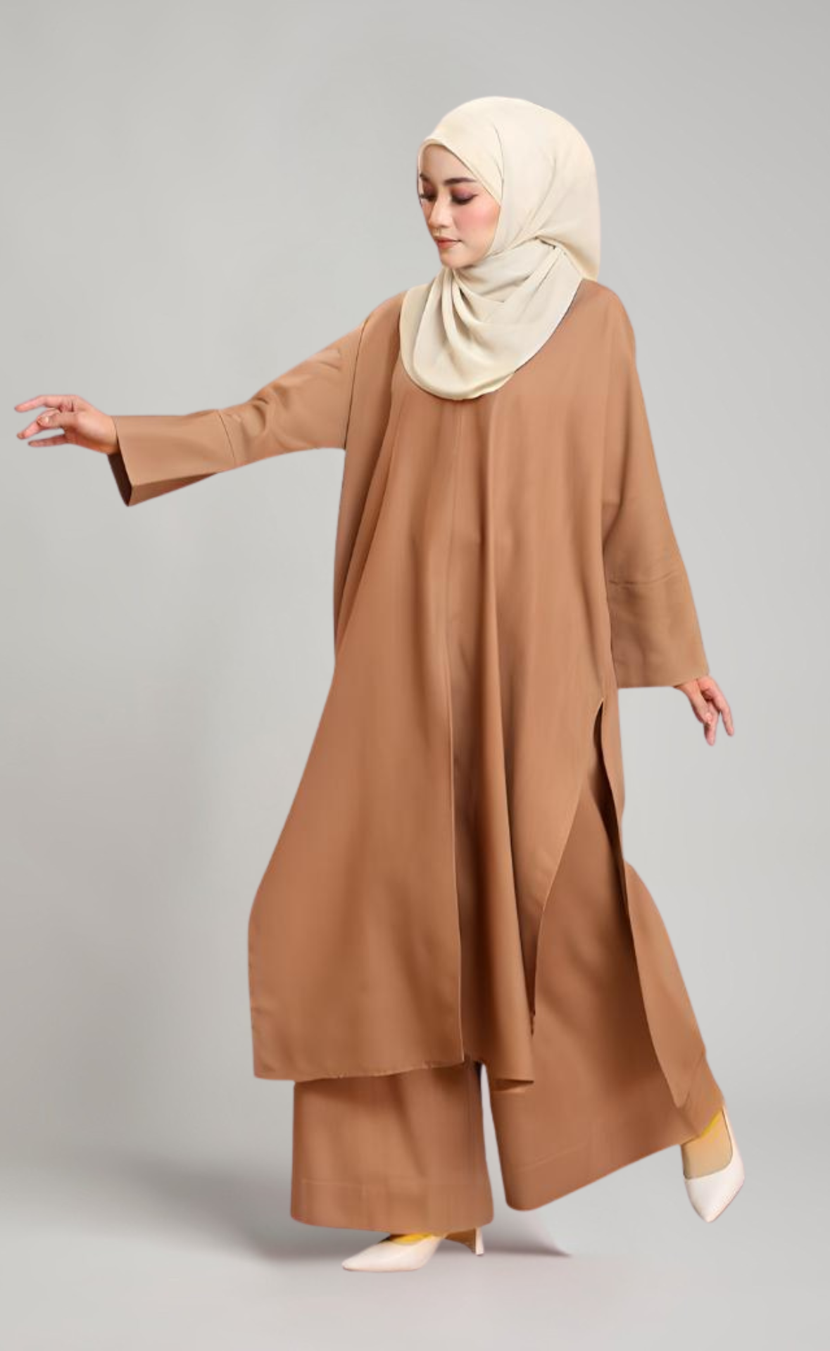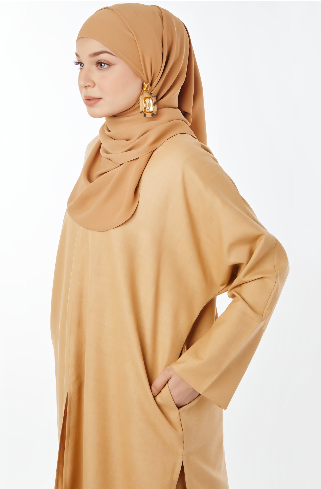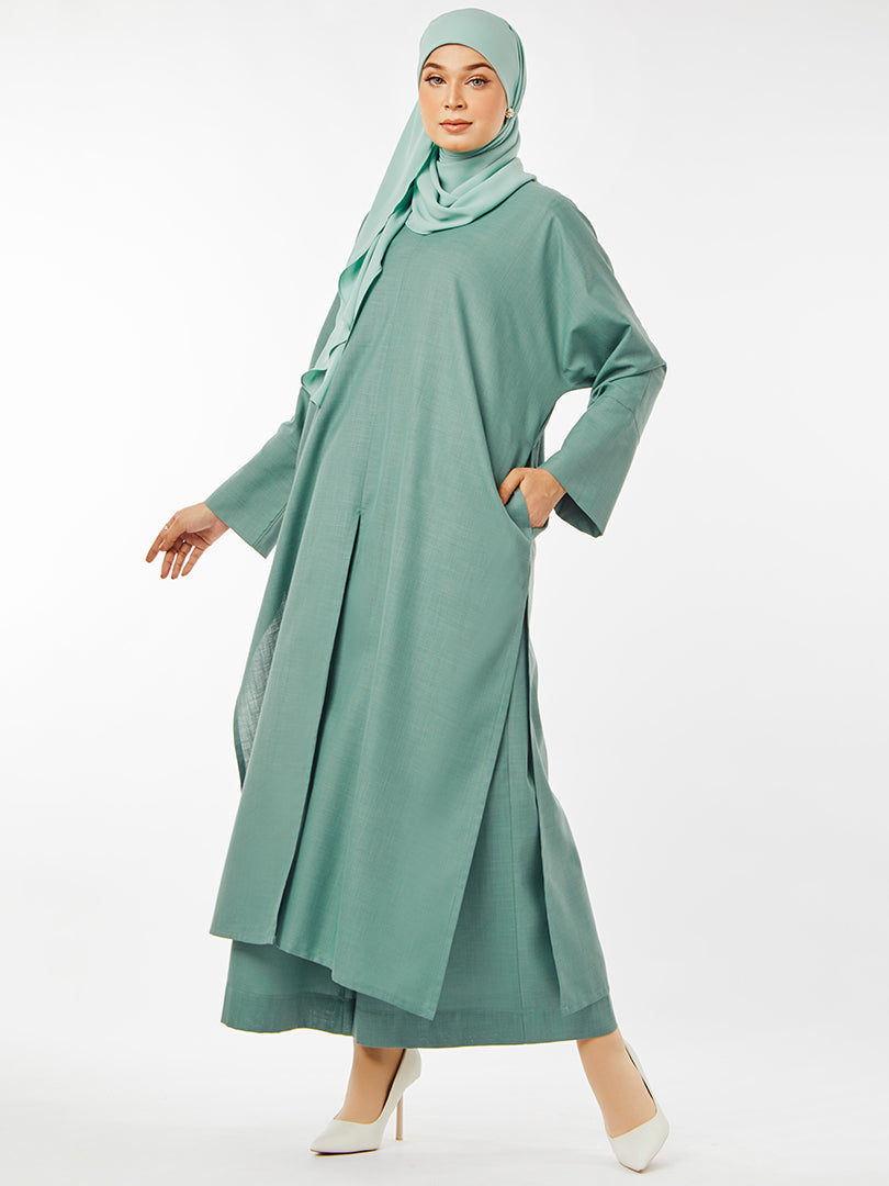 Tampilkan gaya elegan dengan Jenna Kaftan, inspirasi Timur Tengah yang disuntik elemen moden untuk bergaya dengan lebih selesa dan mudah. Kini dalam set lengkap, Jenna Kaftan hadir dengan rekaan longgar yang beralun serta belahan anggun di bahagian depan dan sisi, memastikan kesopanan terjaga disamping nampak menawan. Pilihan ideal untuk wanita Muslimah yang menghargai fesyen dalam masa yang sama dapat menutup aurat dengan sempurna.