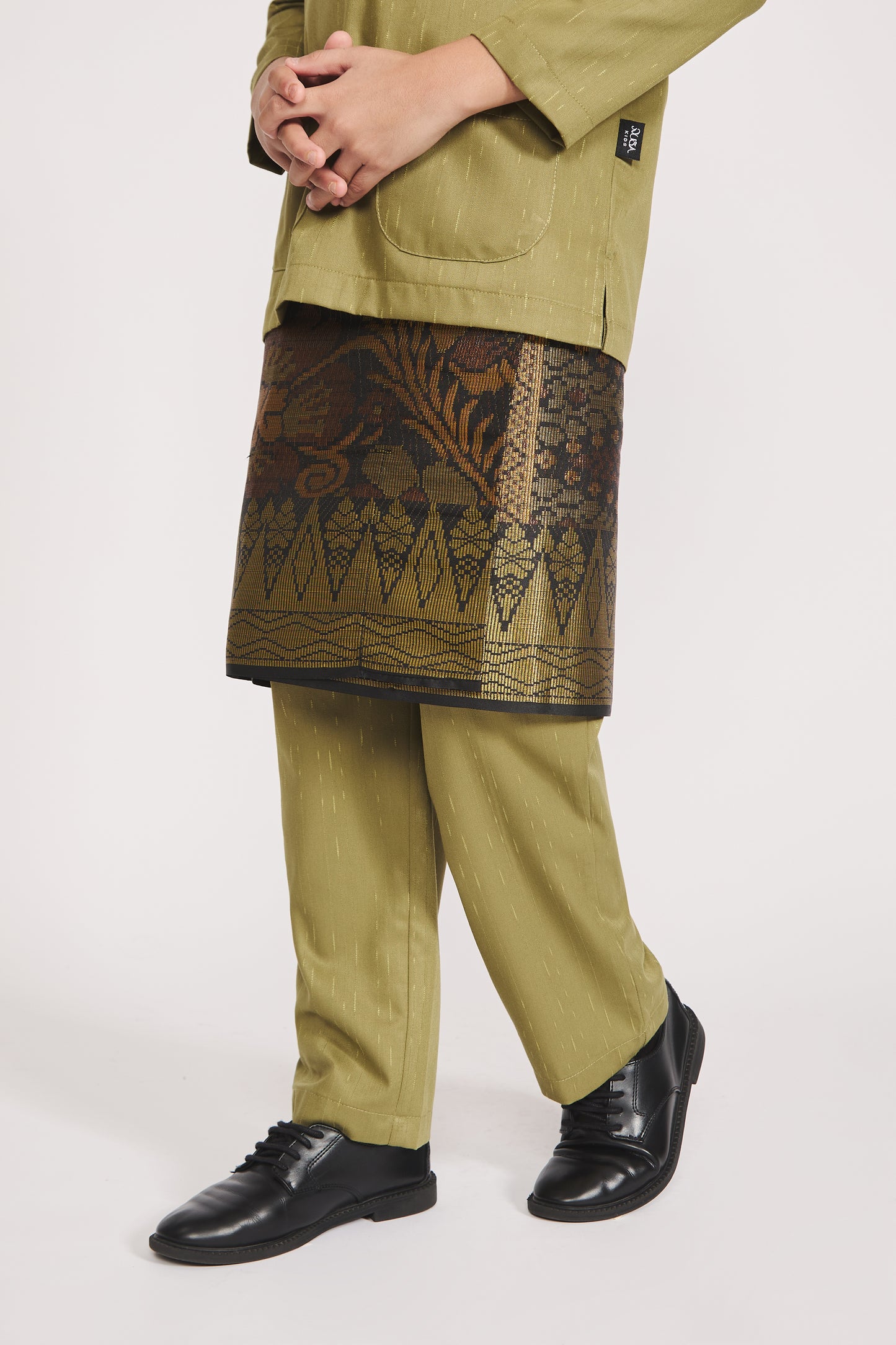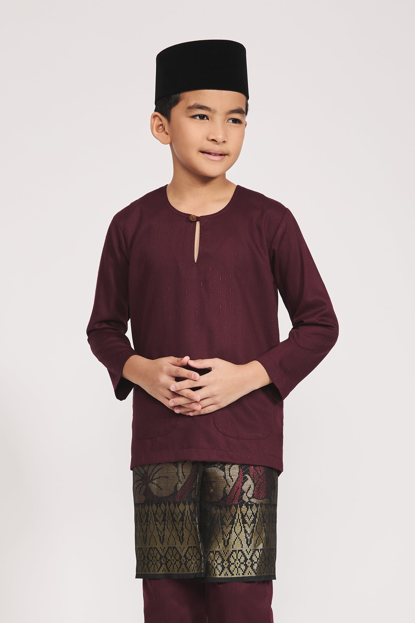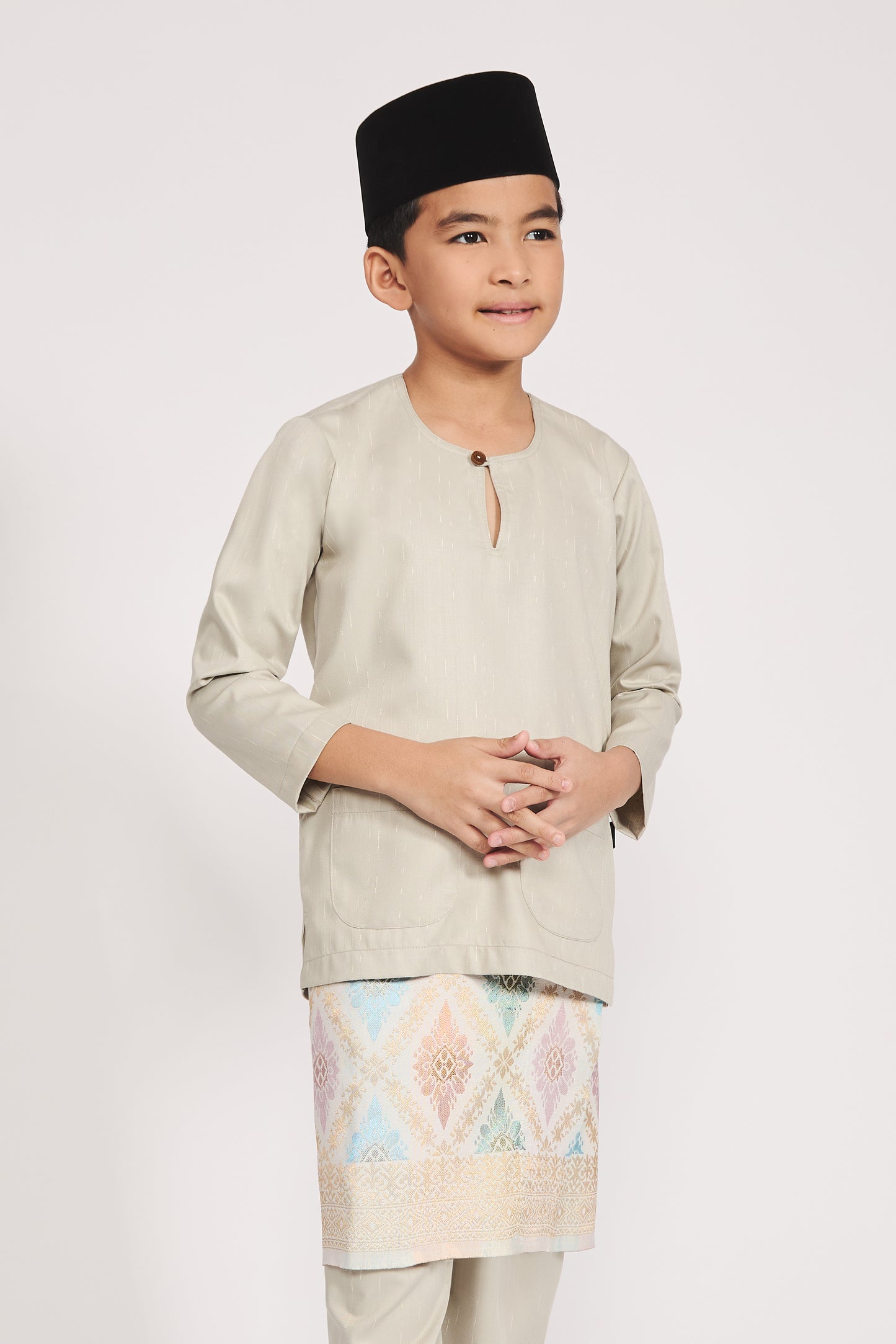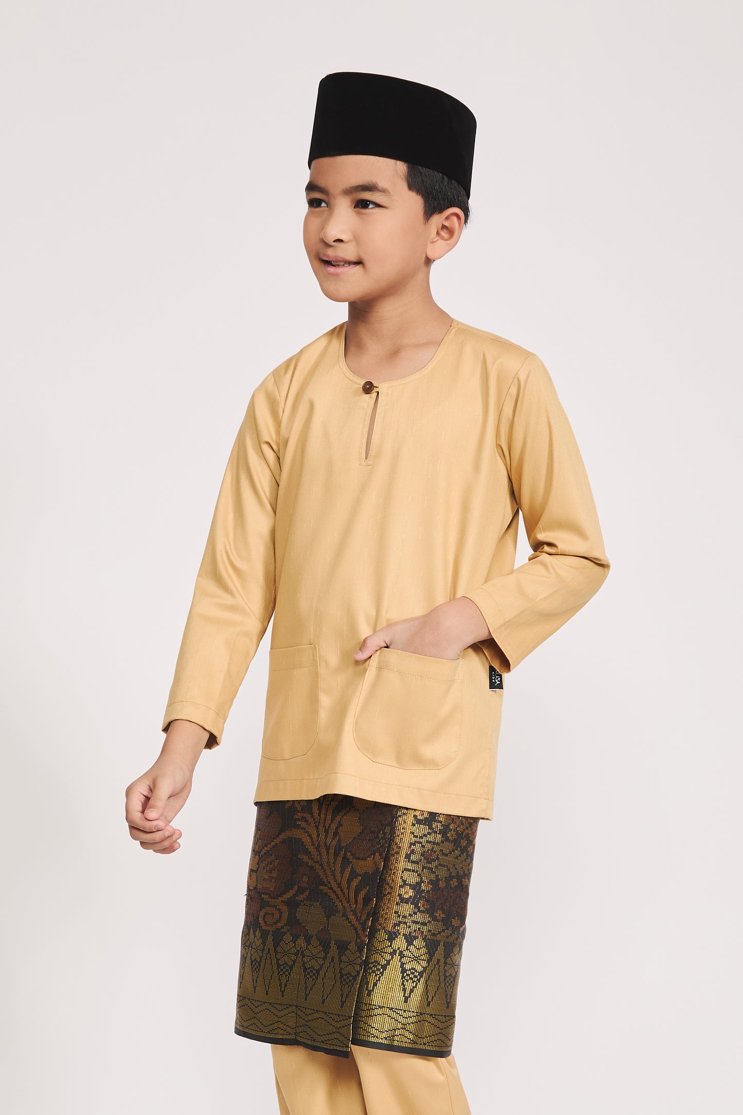 Aduka Putra Baju Melayu Teluk Belanga dari NUSA direka khas untuk si cilik yang ingin kelihatan segak dalam pakaian tradisional sambil kekal selesa sepanjang hari. Sesuai untuk perayaan, majlis formal, atau aktiviti kasual, rekaan ini memastikan anak anda bebas bergerak dengan penuh gaya.