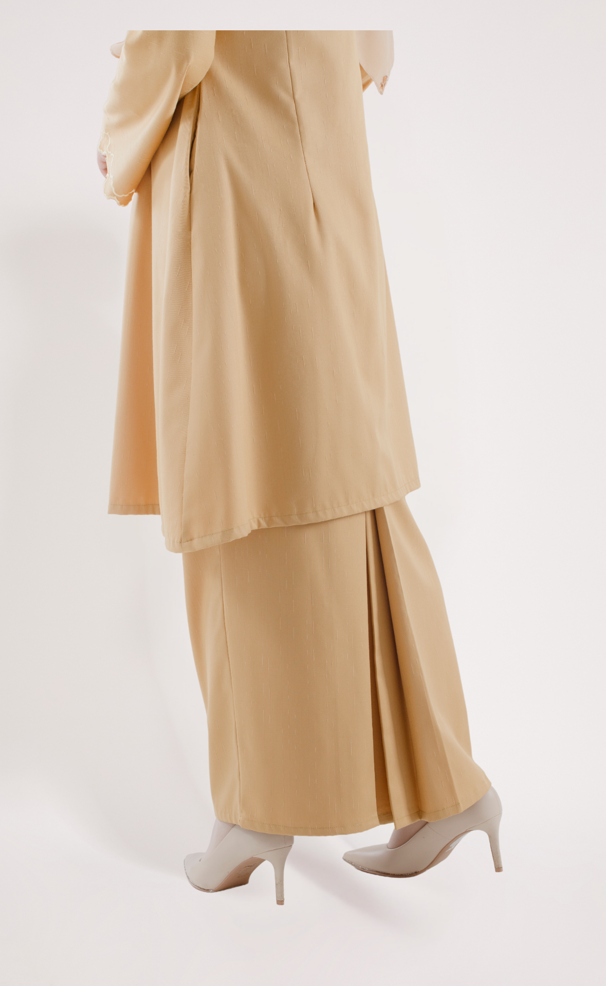 Skirt direka dengan kain susun belakang untuk pergerakan yang lebih selesa sambil mengekalkan penampilan yang kemas, klasik, dan anggun.
