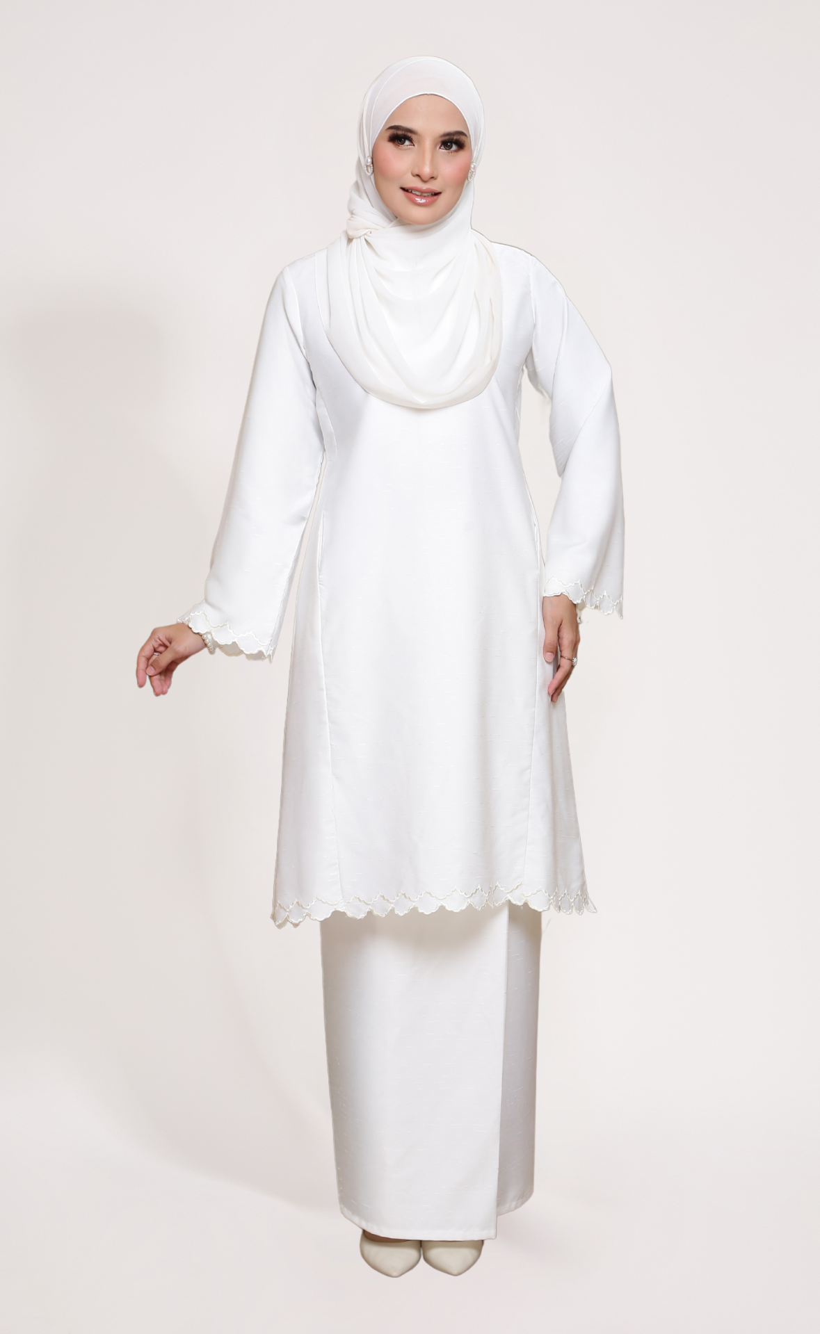 Aura Arika Kurung Riau dari koleksi Mutiara Aidilfitri 2025 - Kirana Collection oleh INHANNA menampilkan rekaan kurung riau tradisional yang diperbaharui dengan elemen moden. Dihasilkan untuk wanita yang ingin tampil anggun dengan keselesaan sepanjang hari, rekaan ini sesuai untuk majlis perayaan, acara formal, mahupun kasual.