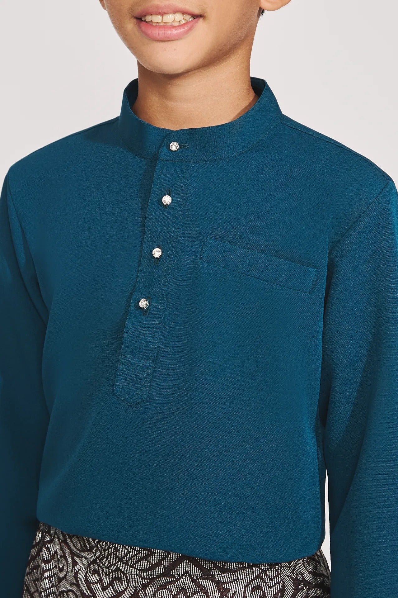 Regular price RM69.00 MYRNilam Kandi Baju Melayu Cekak Musang Budak oleh NUSA adalah sebahagian daripada koleksi "Mustika" Mutiara Aidilfitri 2025, direka untuk melengkapkan Nilam Baju Melayu Cekak Musang dewasa. Rekaan elegan ini membolehkan keluarga tampil serasi dengan gaya sedondon, mencipta suasana indah dan harmoni pada Hari Raya.