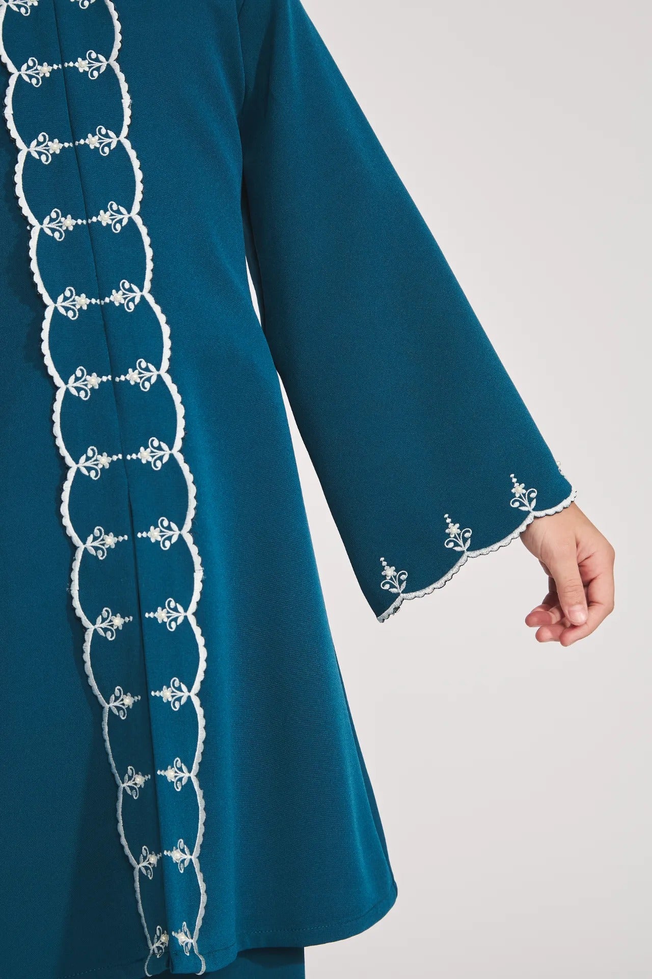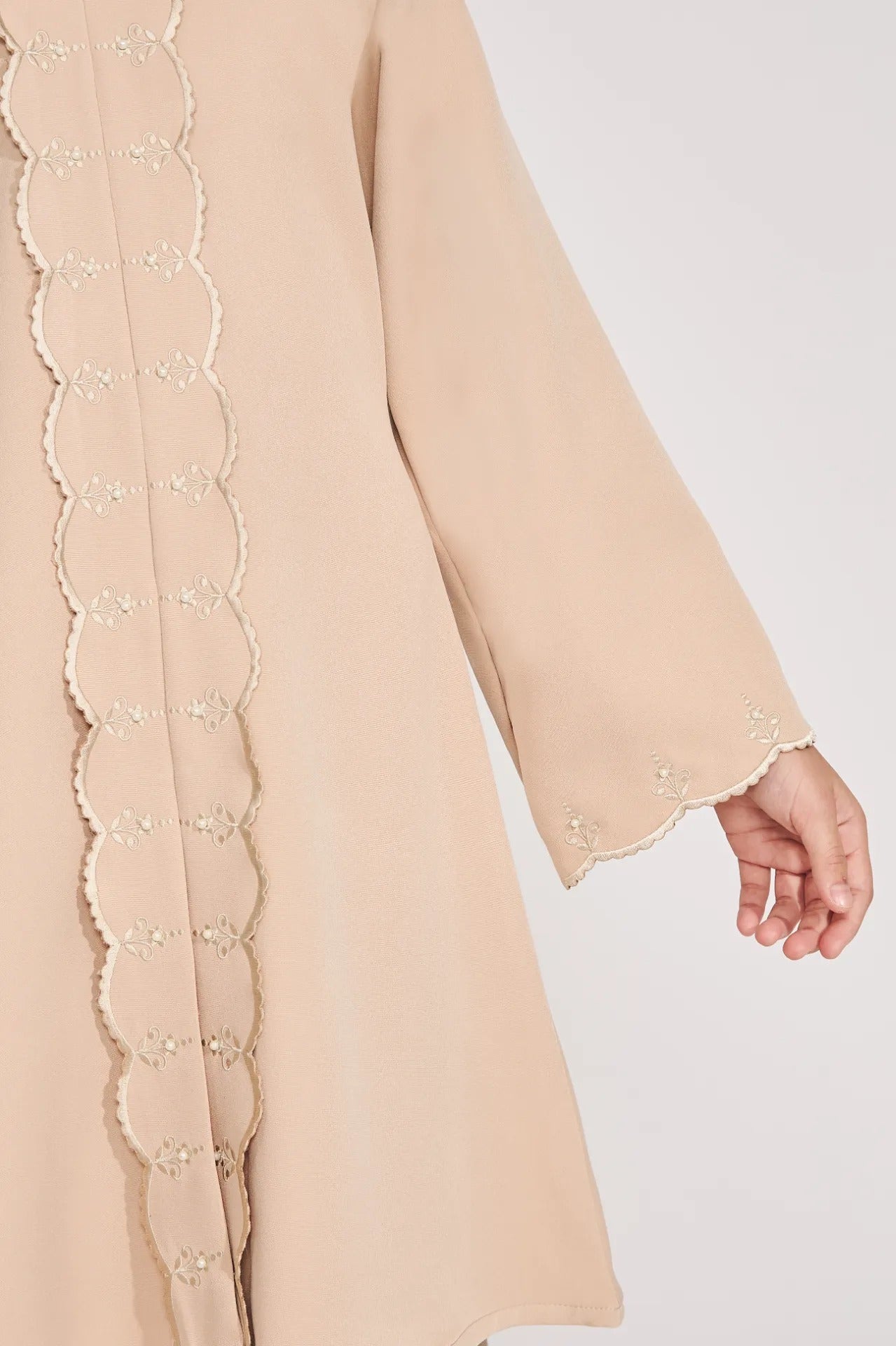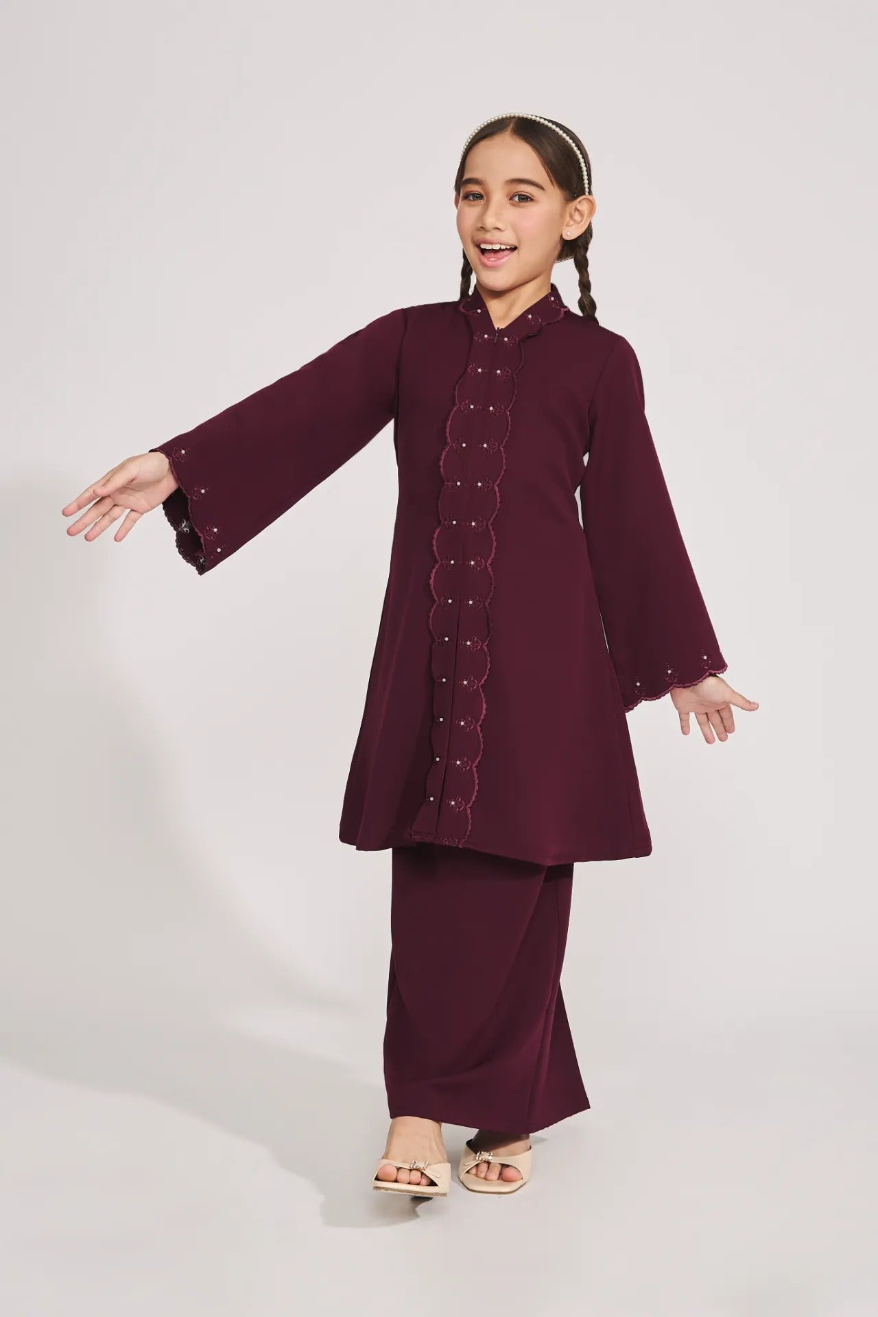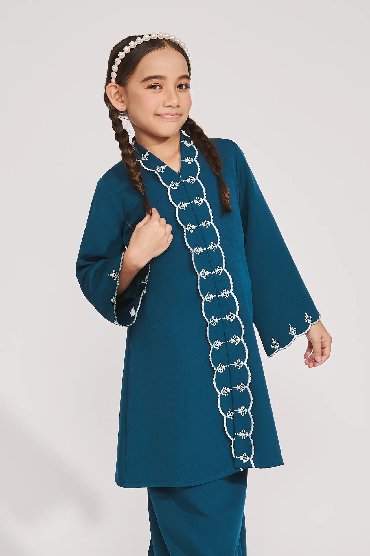 Diinspirasikan daripada versi dewasa, sulaman pada kebaya ini telah disesuaikan untuk kanak-kanak. Perincian sulaman halus yang dihiasi dengan mutiara memberikan sentuhan elegan yang lembut dan sesuai untuk si kecil.