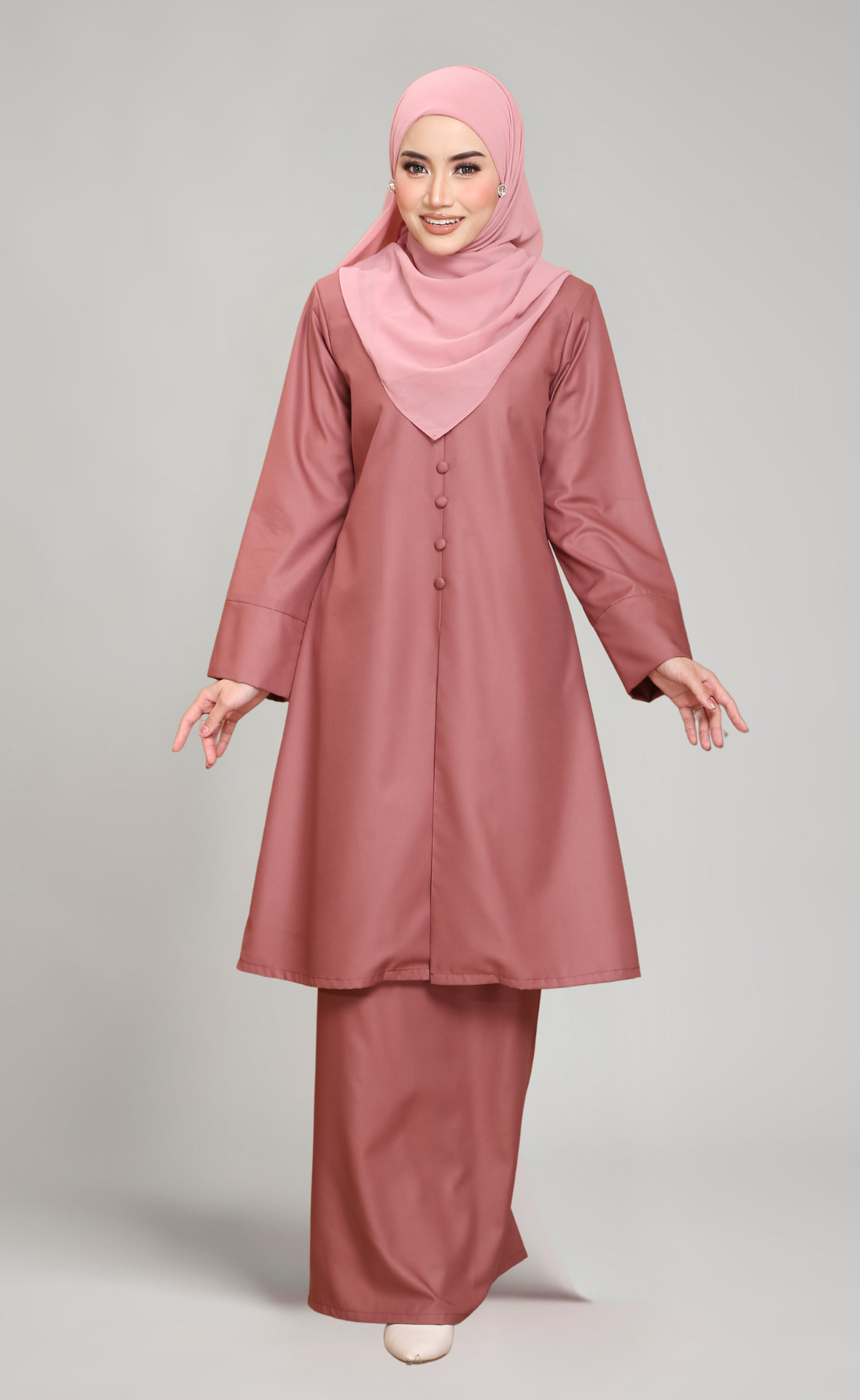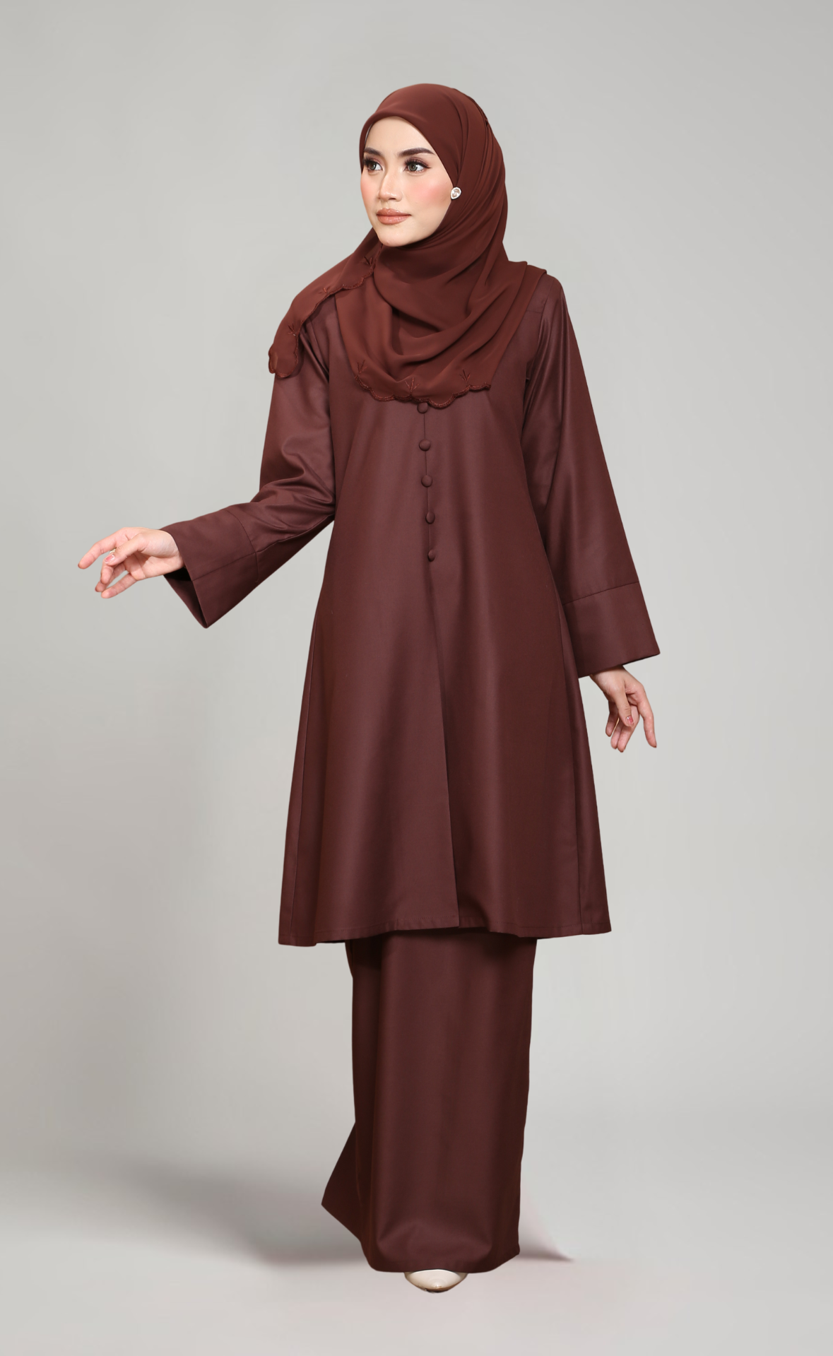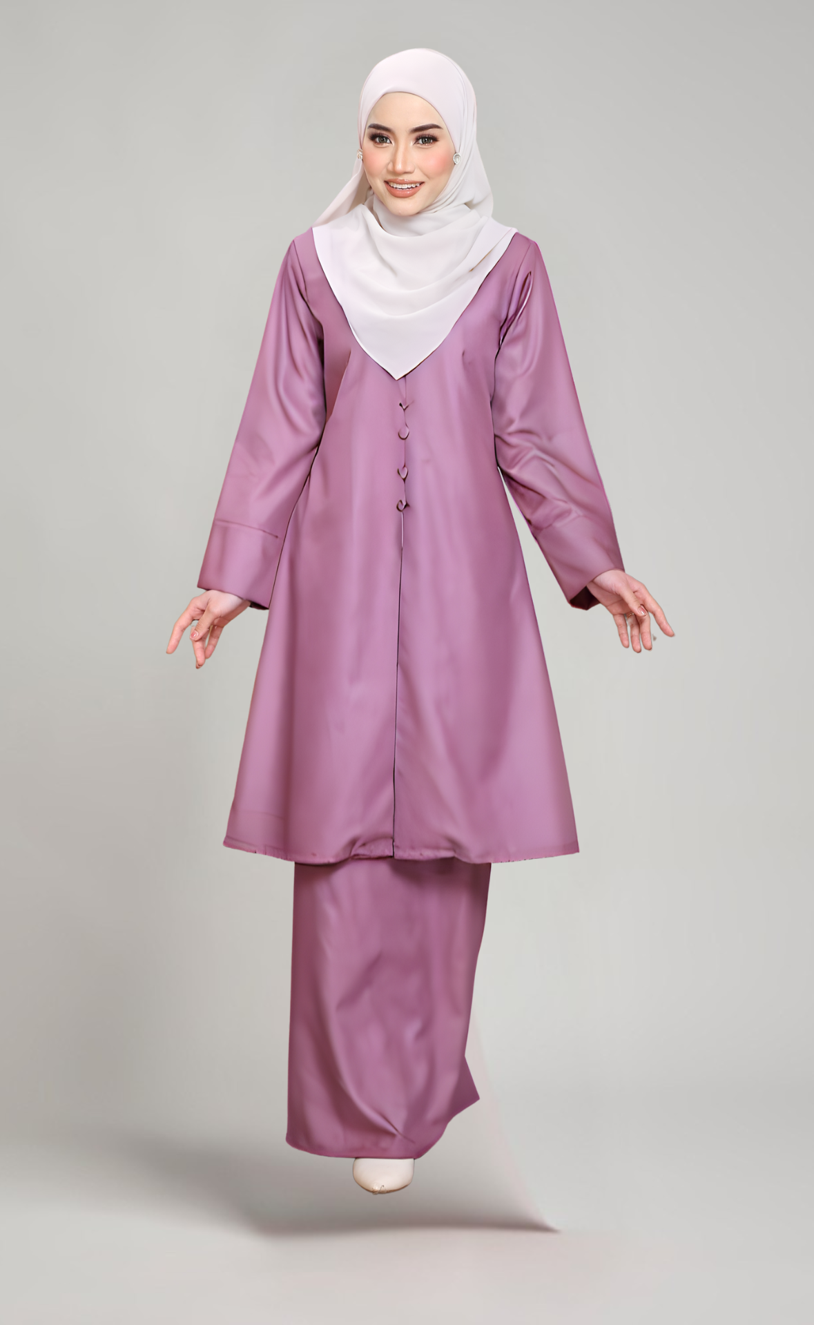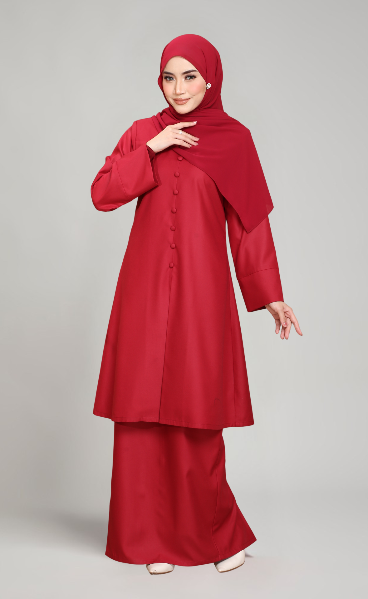- Lengan lebar dengan cuff yang menambahkan gaya moden dan elegan