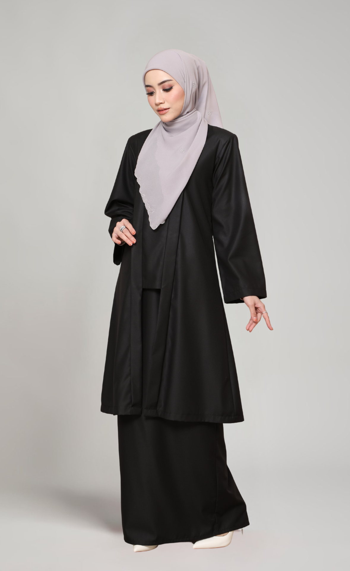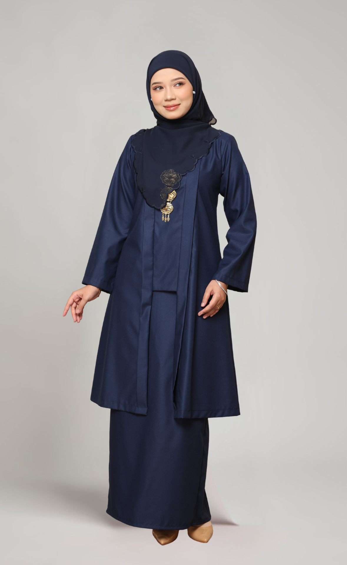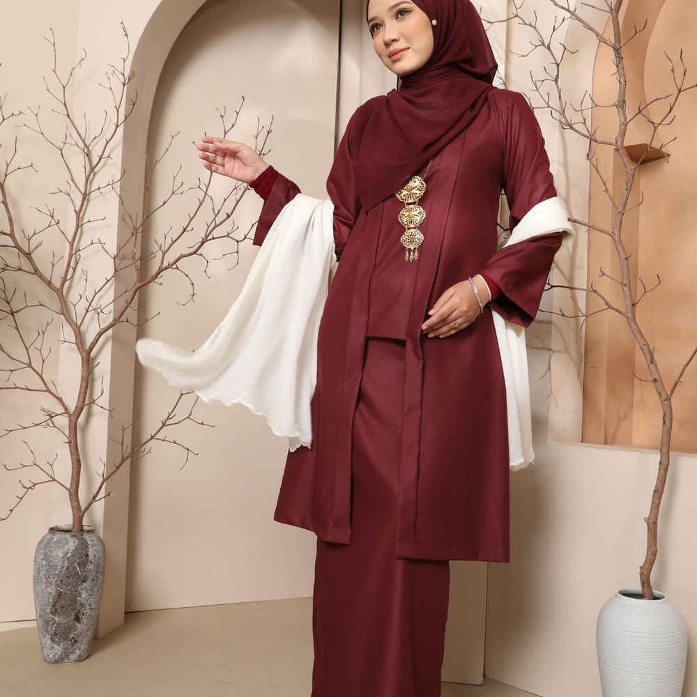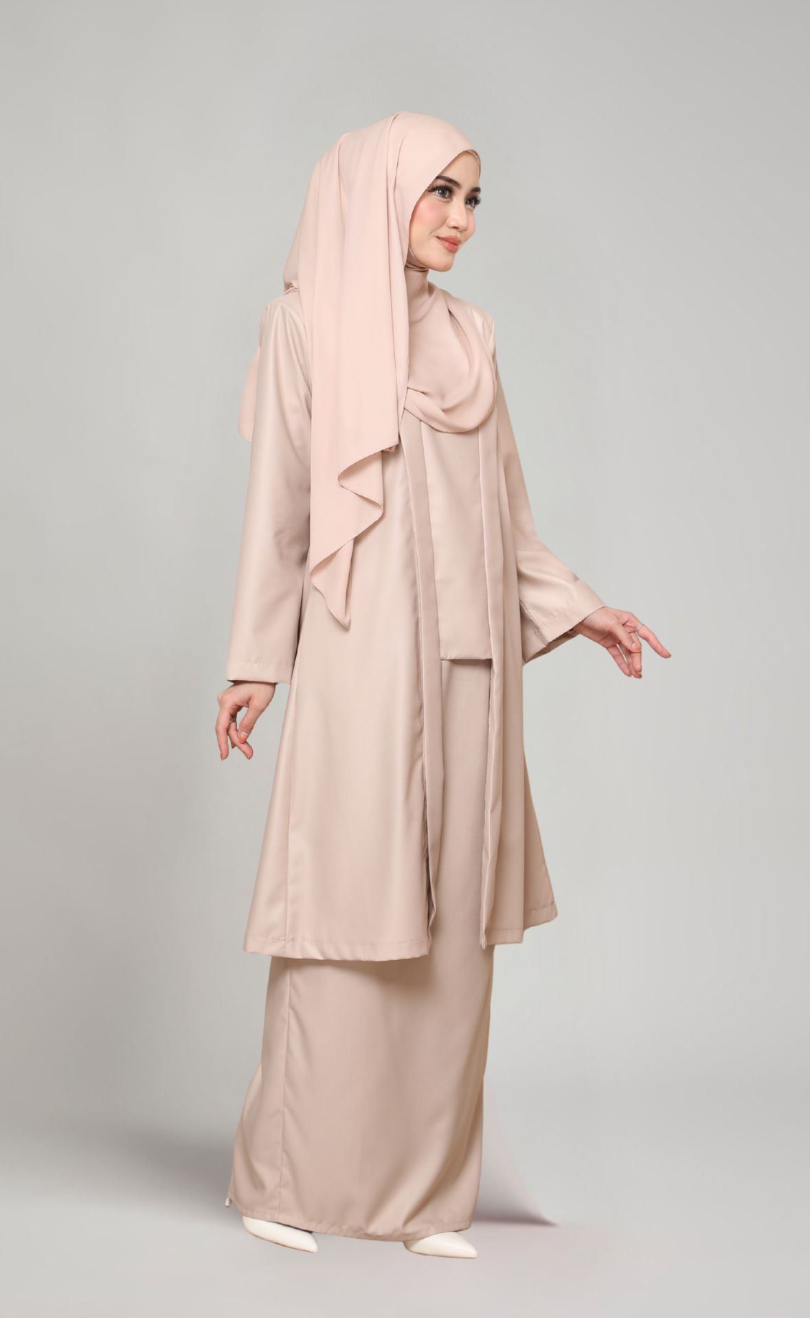 Kebaya labuh paras lutut ini dipadankan dengan kain kipas belakang klasik, memberikan keselesaan bergerak serta mengekalkan elemen tradisional yang menjadi kegemaran peminat kebaya. Rekaannya yang versatil memudahkan anda menggayakan Tinaa 2.0 sama ada untuk majlis formal, acara keluarga, ke pejabat ataupun gaya kasual yang lebih moden dengan aksesori minimal sempena lebaran.